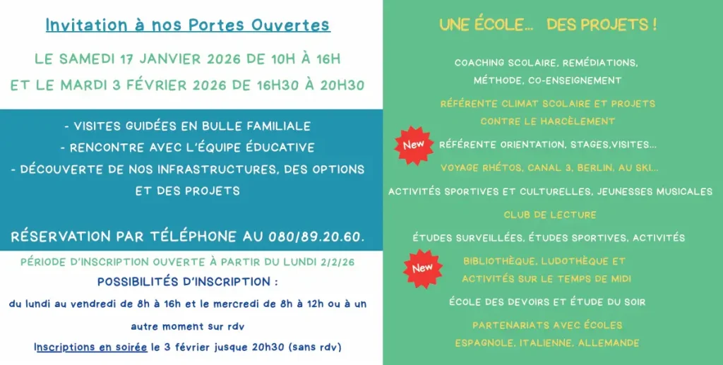 Venez rencontrer l’équipe éducative, visiter les infrastructures rénovées et en apprendre davantage sur les options, projets pédagogiques et inscriptions.